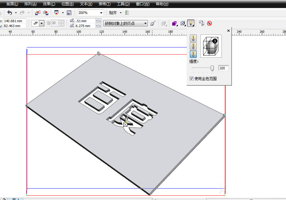 经常看到用coreldraw来做浮雕类,立体类字体,这次就做做镂空的字体!
