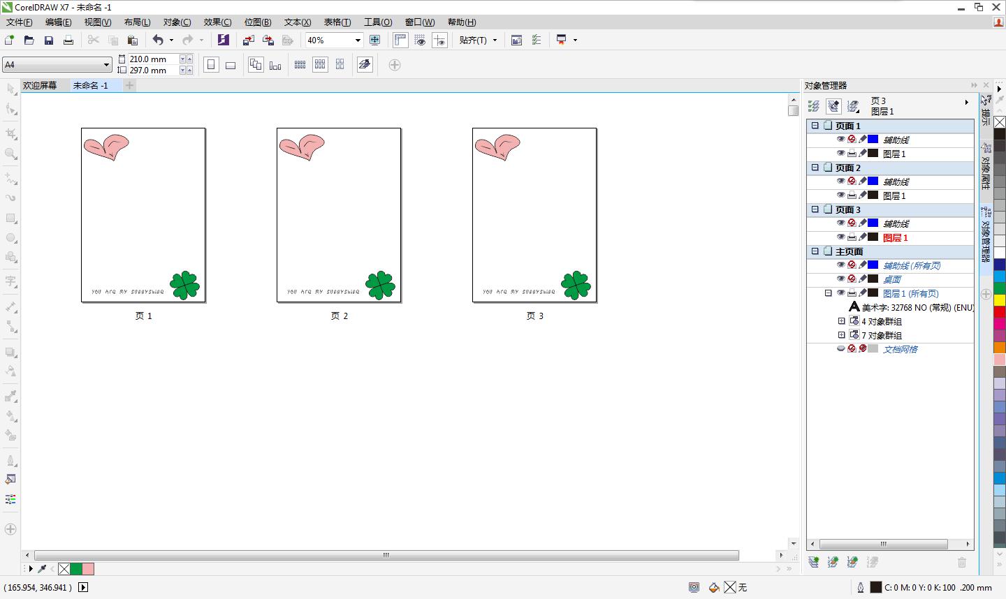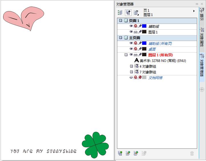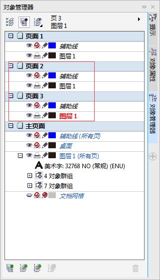 单击“对象管理器”泊坞窗左下角“新建主图层(所有页)”按钮,新建一个主图层为“图层1(所有页)”。