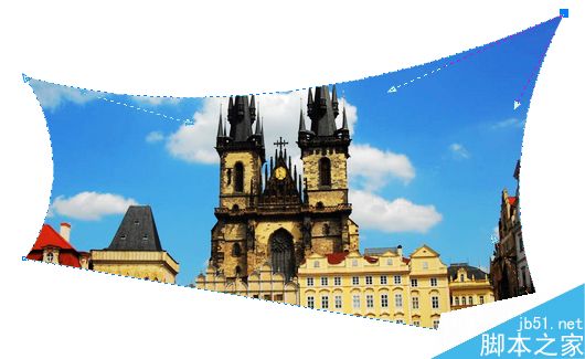 2. 拖动位图的角节点,可以将位图裁切为不规则的形状,而且还可以在图像边框的控制线上添加或删除节点,从而将位图才切成任意形状。