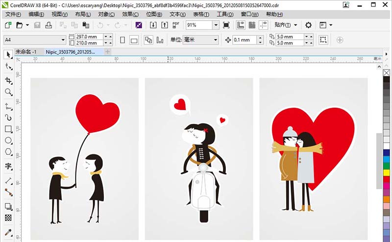 1、我们先随意打开一个矢量素材,然后我们逐个切换下不同的视图模式看看。
