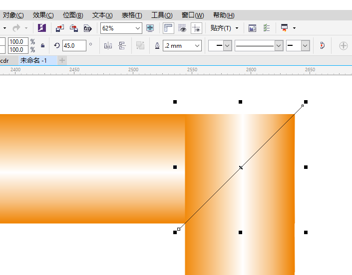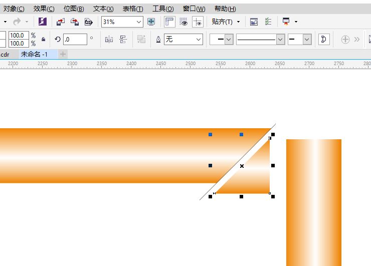 5、再对垂直框切割,这时候可能需要对垂直边重新调整渐变填充。