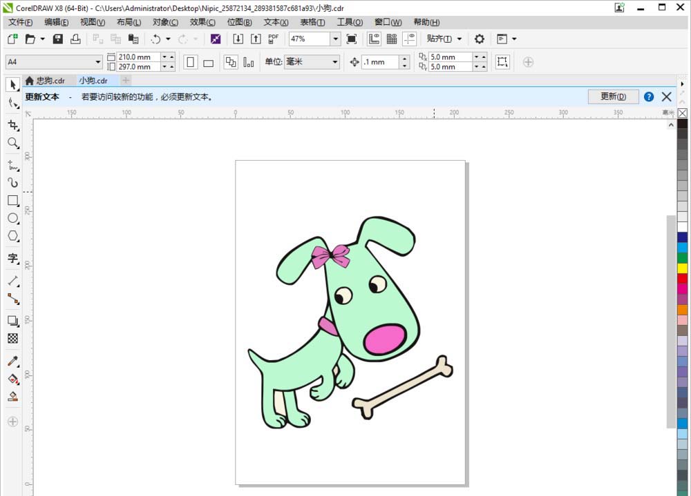 CDR想要画一个卡通小狗玩骨头矢量画,该怎么绘制呢?下面我们就来看看详细的教程。