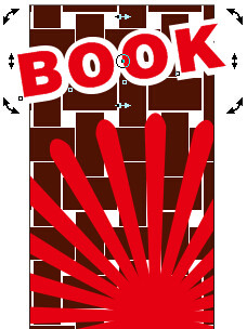 12、变换文字。选中添加了轮廓的文字,按住Shift键用鼠标将其向外拖拽,使文字等比例放大,并旋转文字,达到如图所示的效果。
