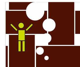 14、绘制图形。利用“椭圆形工具”绘制出正圆,使用“矩形工具”绘制出矩形,将其组成一个人物的图形,填充颜色,并绘制一些大小不一的正圆推行,将其进行排列,得到如图所示的气泡效果。