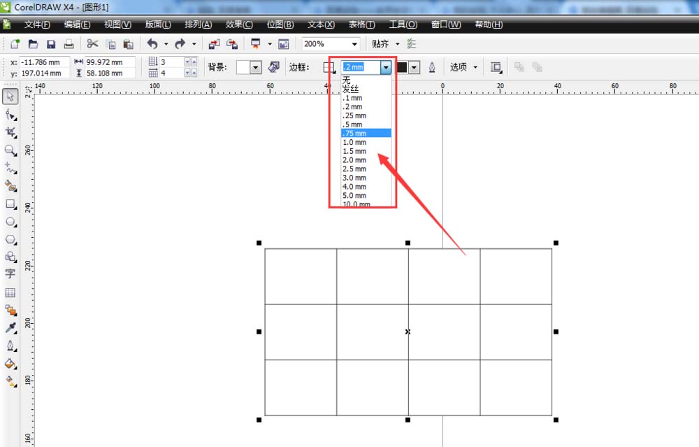 cdr中画的表格,想要调整边框的粗细,该怎么调节呢?下面我们就来看看详细的教程。