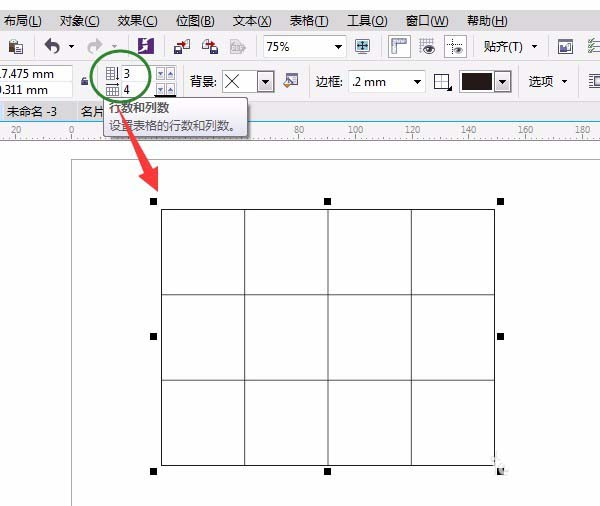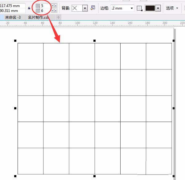 2、用表格工具在绘图区画出表格,在属性栏中改“行数和列数”,输入数字即可增加行或列。如图所示: