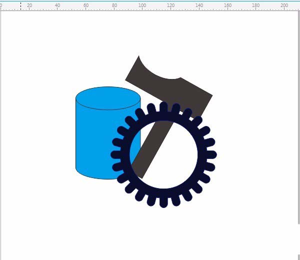 8、齿轮、捶、圆柱三个图形在一些,旋转图形,选不同的图形按快捷键:Ctrl+PgDn图形向下一层顺序调整。如图: