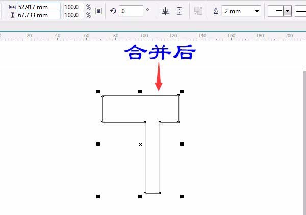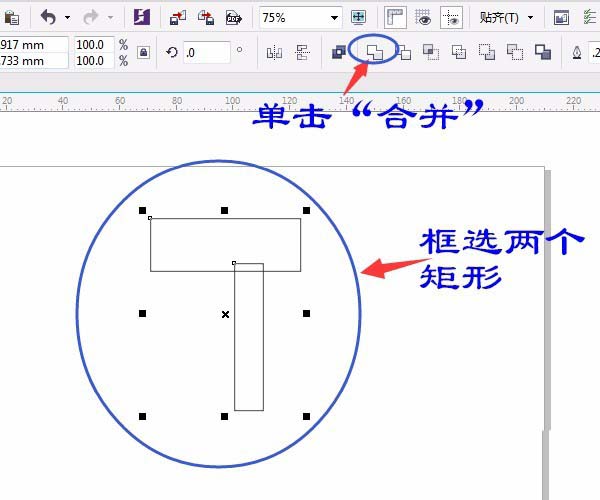 2、按空格键切换或单击用“选择工具”框选两个矩形,单击属性栏中单击“合并”,结果如图: