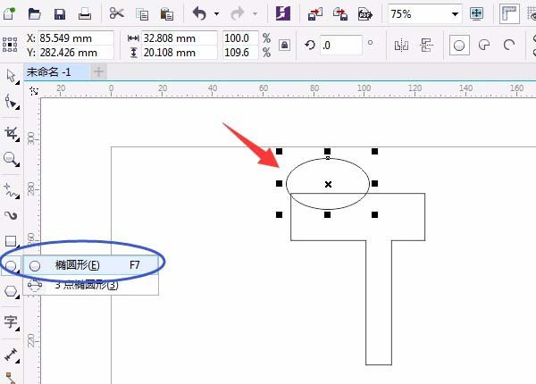 3、单击用“椭圆形工具”画出一个椭圆,并移动位置,如图所示: