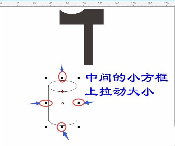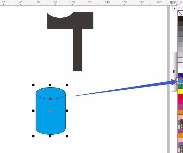 7、按空格键切换成“选择工具”调整圆柱形,中间的小方框上拉动大小。单击“调色板”中的颜色填充颜色,如图: