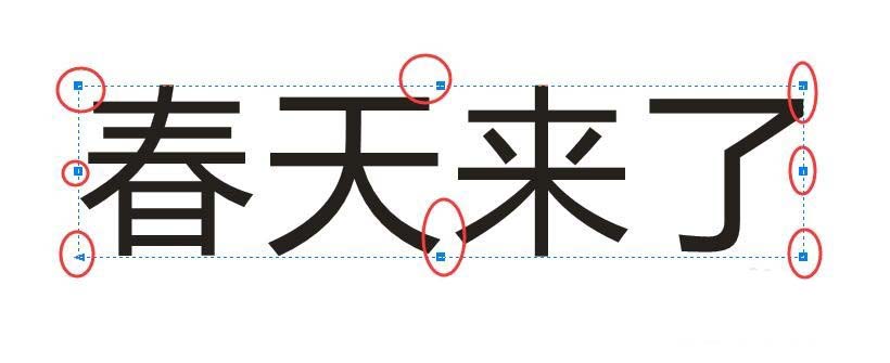 4、上面有8个节点,随点拉动一个节点就可以让字体变形