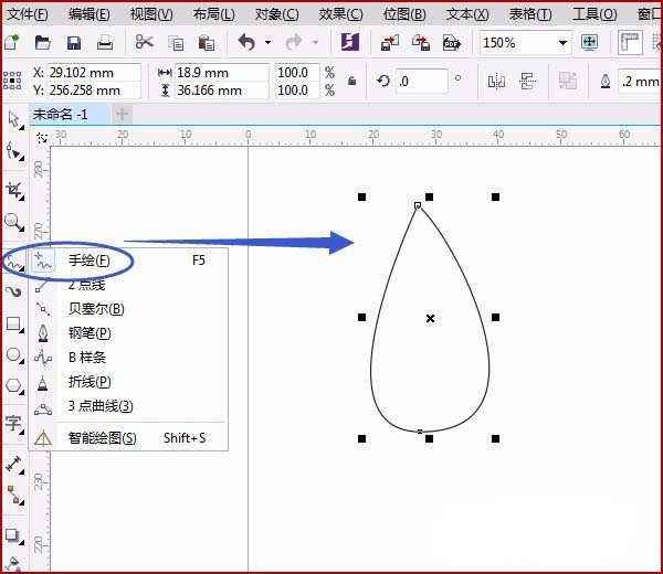 1、用“手绘工具”画出大致的树叶形状,并用“形状工具”调整细节部分,效果如图: