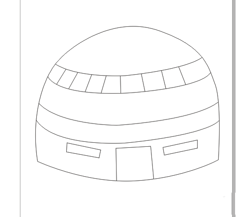 4、在蒙古包上面画出弧线作为蒙古包的结构线,如图所示:
