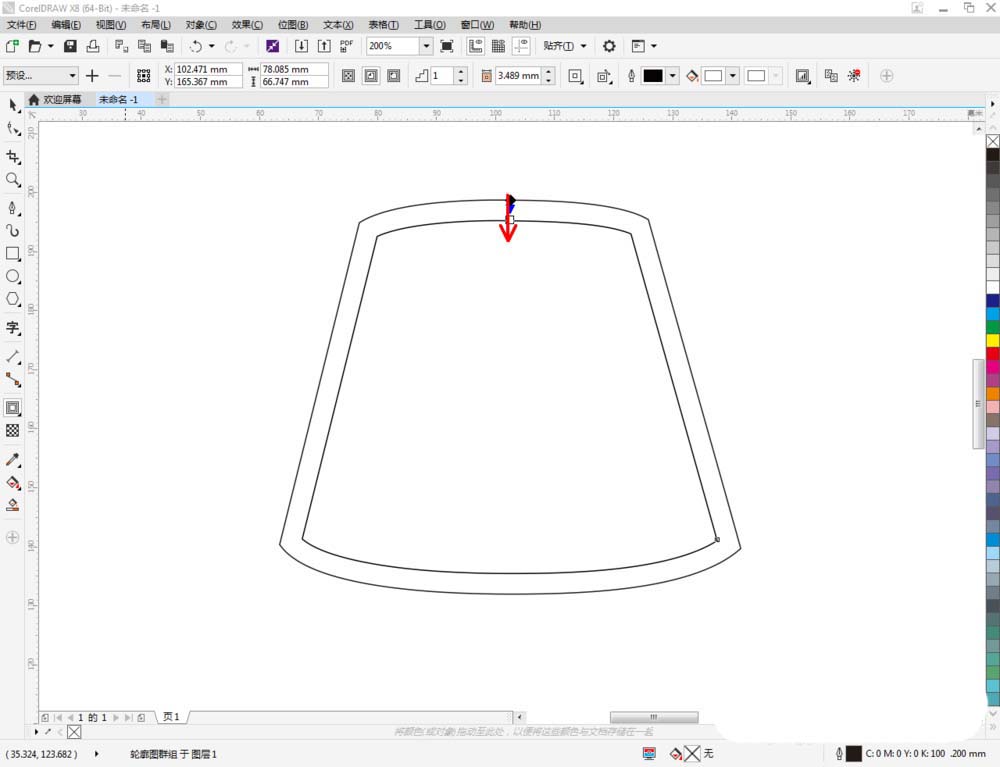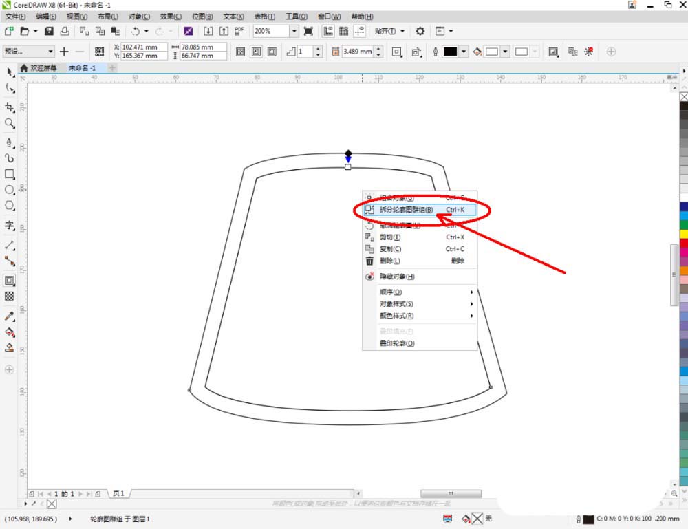 3、点击【轮廓图】对图示图案进行轮廓处理。完成后,选中图案,点击鼠标右键-【拆分轮廓图群组】将图案拆分并删除原图案(如图所示);
