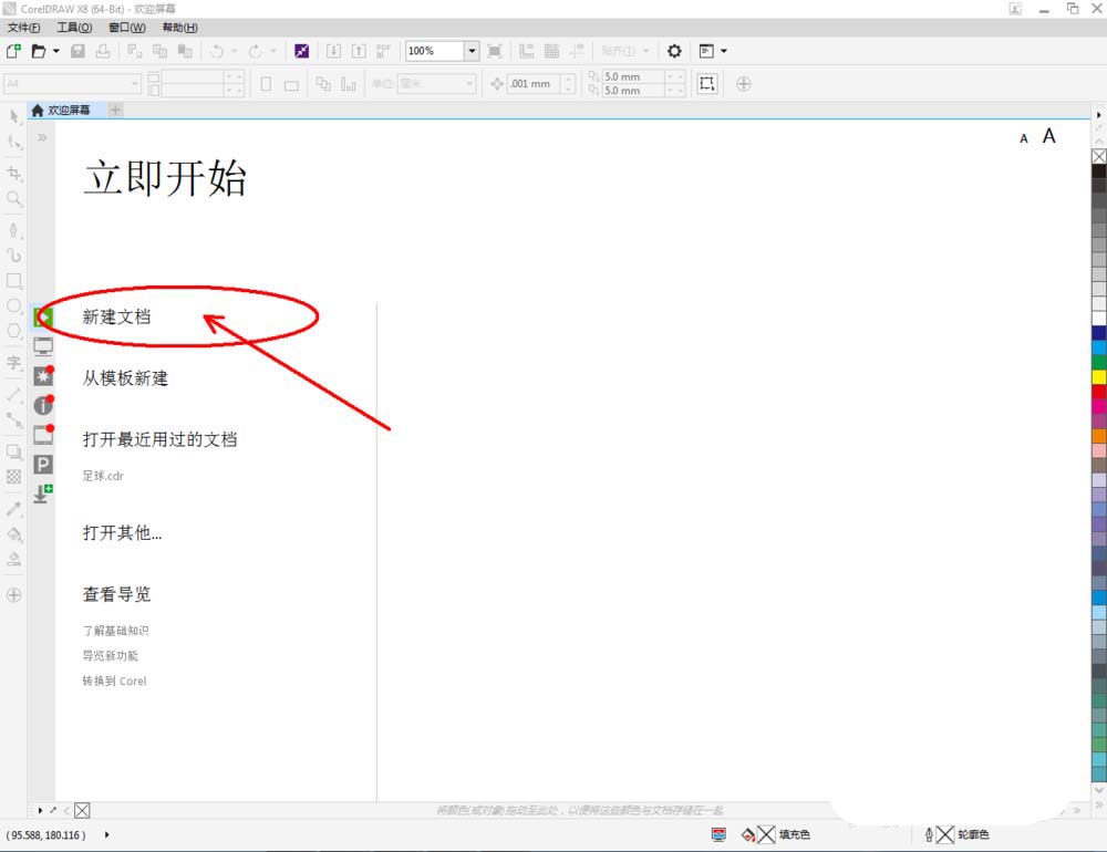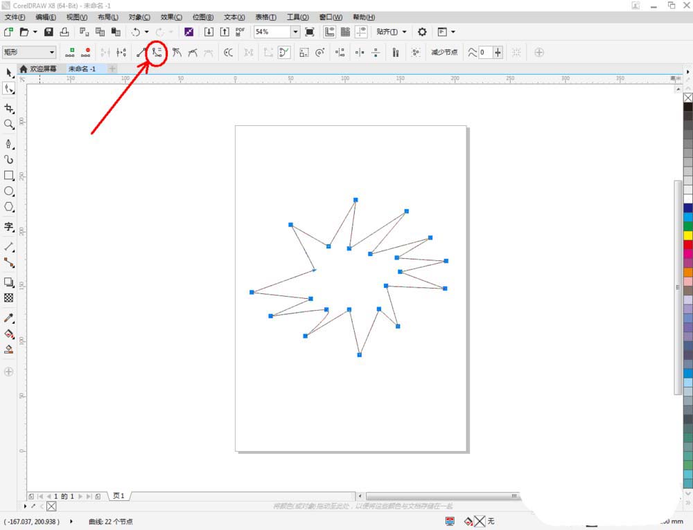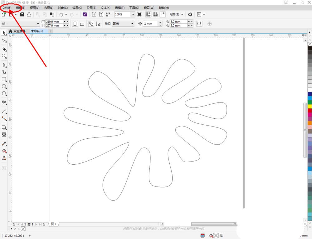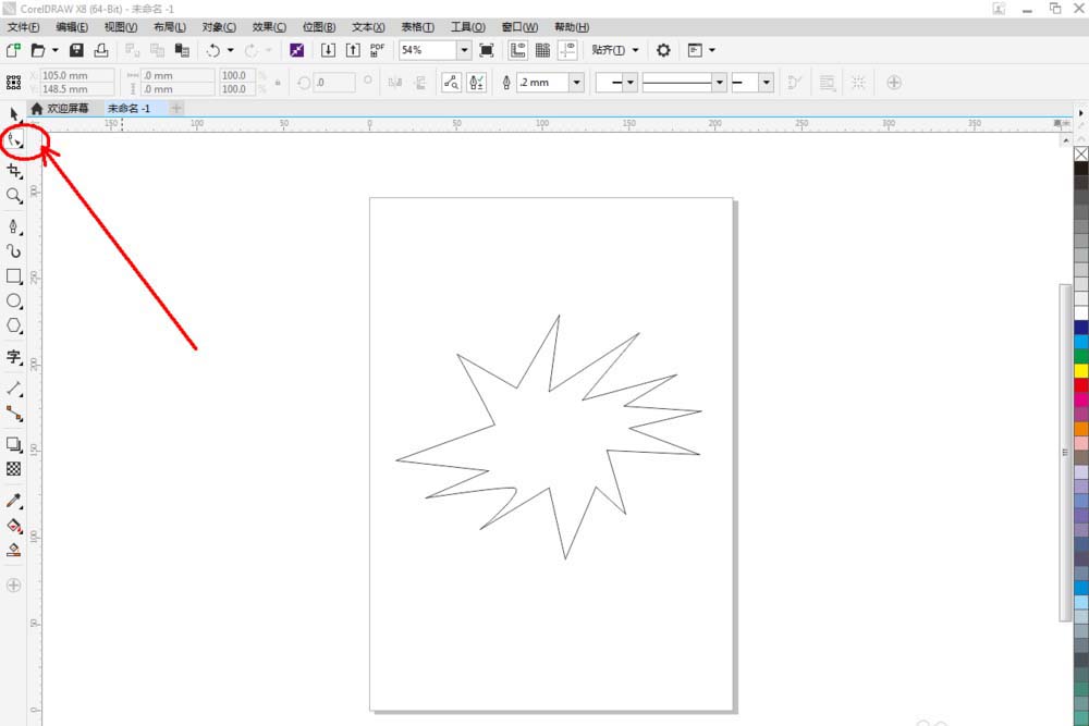 1、打开CorelDRAW X8 软件,点击【新建文档】,按图示参数新建一个cdr文档。点击【钢笔工具】按图示绘制一个多边图案;
