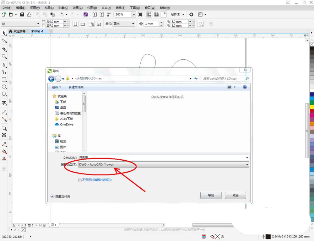 3、点击【文件】-【导出】,弹出导出设置栏后,将导出文件格式设置为:DWG格式并将按图示设置好cad版本,点击【确定】保存好dwg文件(如图所示);