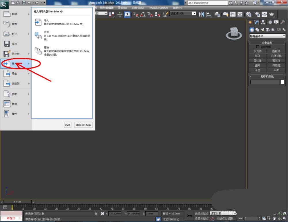4、打开3Dmax2012软件,点击【文件】-【导入】,弹出导入设置栏后,按图示设置好导入文件的各个参数,完成dwg文件的导入操作;