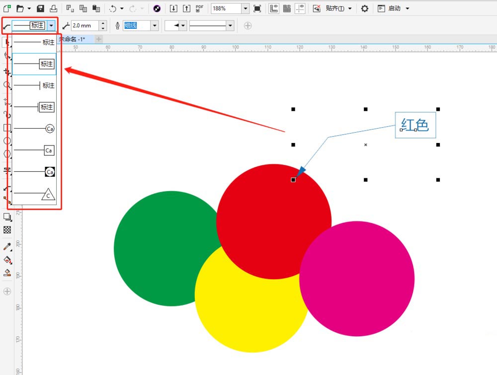 3、标注形状:点击属性栏标注形状可以选择不同的标注文本形状,有方形圆形三角形等形状选择。