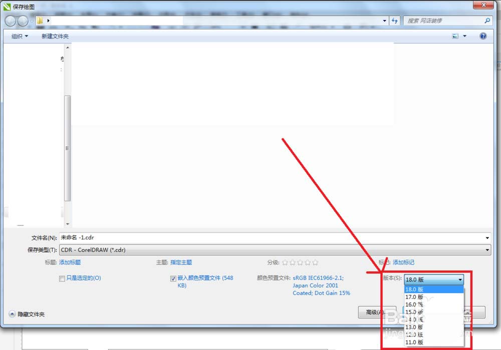 3、有多个版本给你选择,你的版本+10,就是你的版本等级了。比如说cdrx8 ,版本就是18.0版