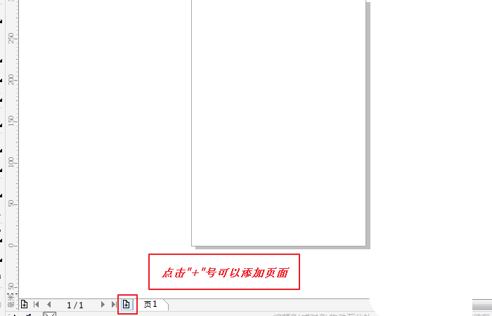 1、我们打开cdr软件,在窗口的下面,可以点击"增加页面"的按钮,如图所示;