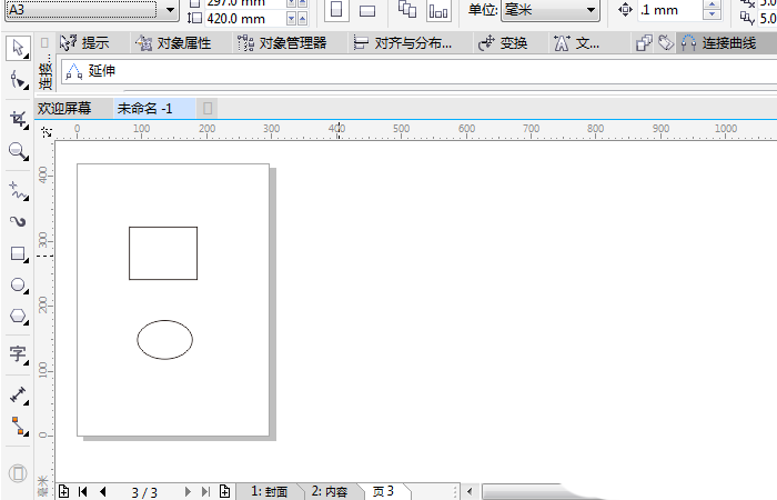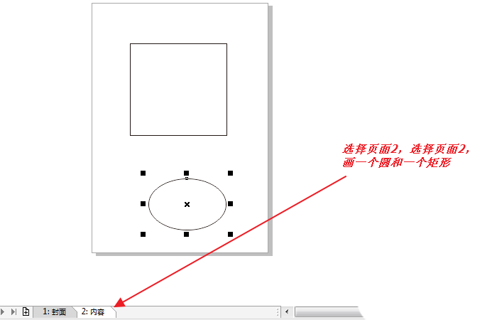 1、下面我们在"内容"页上画一个矩形和一个椭圆,如图所示;