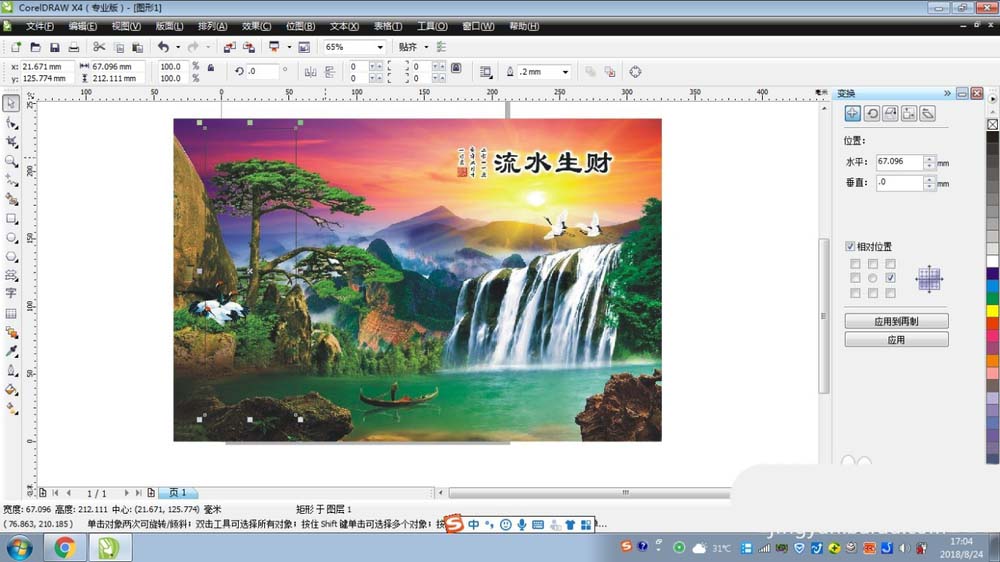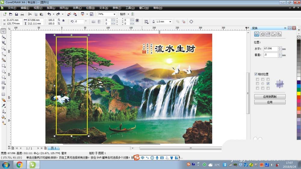 1、复制一份山水图片,黏贴到CDR的绘图区域中,然后在图片的里面绘制一个四方形的图形。