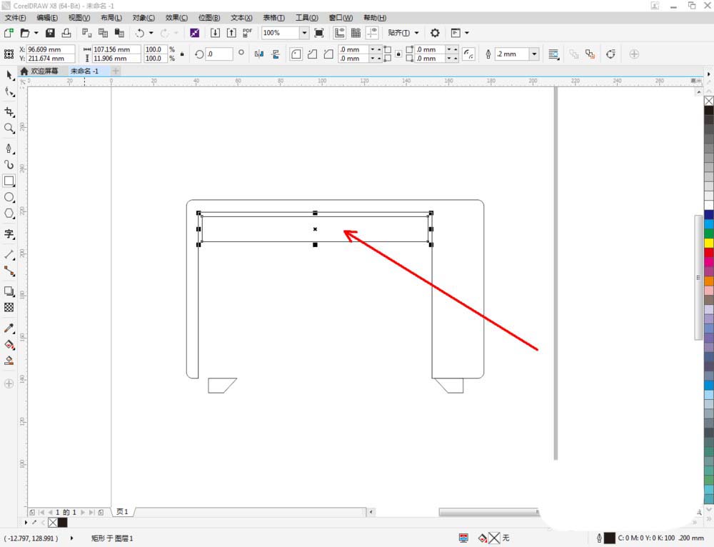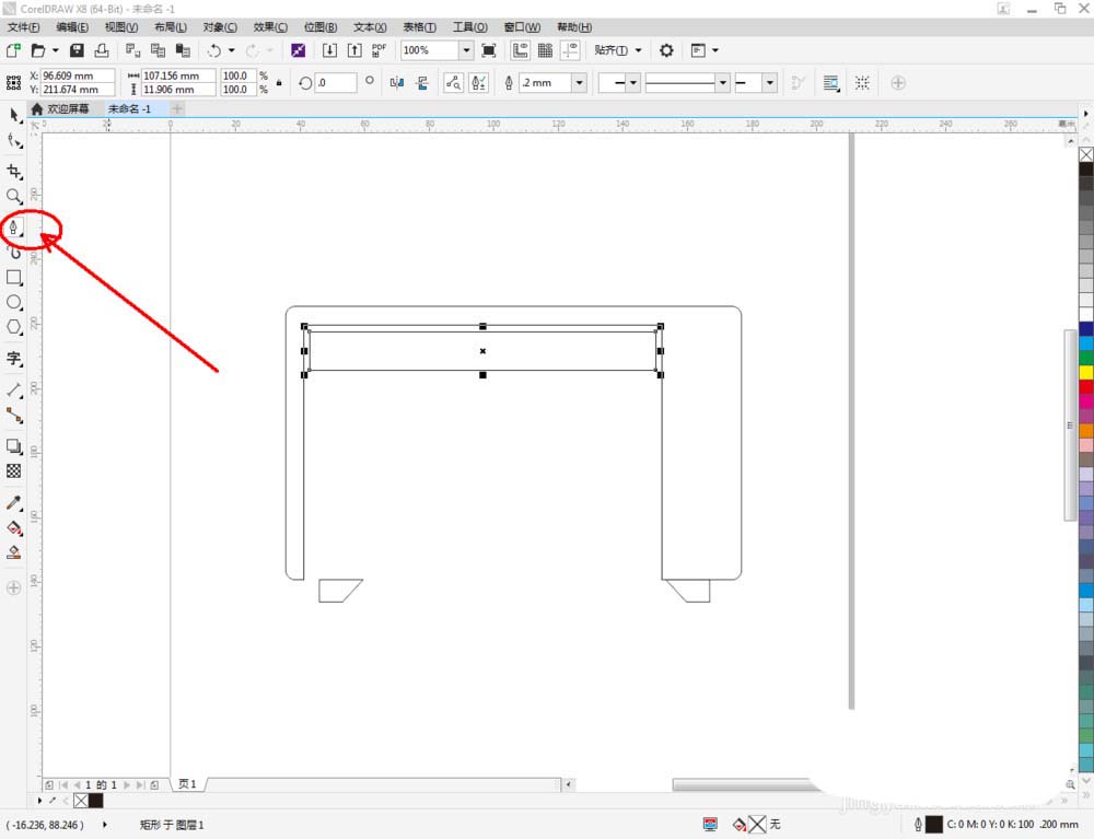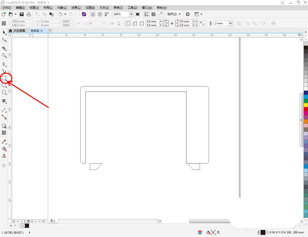 3、点击【矩形工具】,按图示绘制一个矩形图案后,点击【选择工具】选中图示两个图案,点击【移除前面对象】将两个图案结合(如图所示);