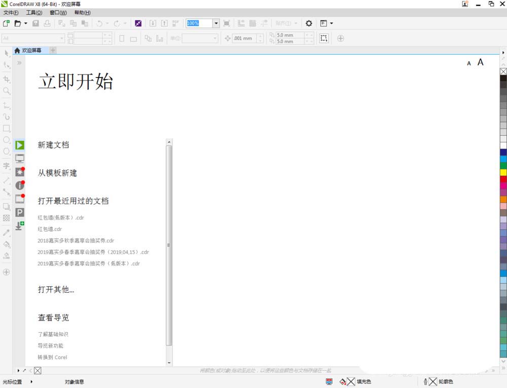 1、打开CorelDRAW X8 软件,点击【新建文档】,按图示参数新建一个cdr文档(如图所示);