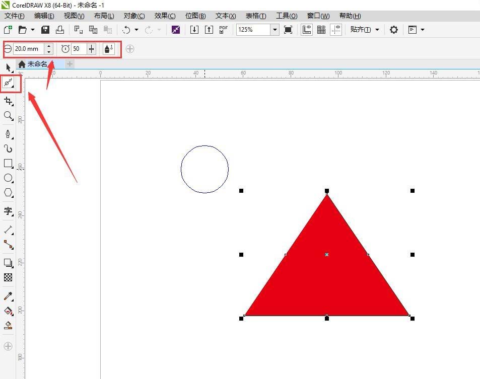 1、打开软件,画出你想要的图形,我这边画了一个三角形,点击平滑工具,设置好想要的参数。笔尖和半径参数越大,平滑的面积也就越大。