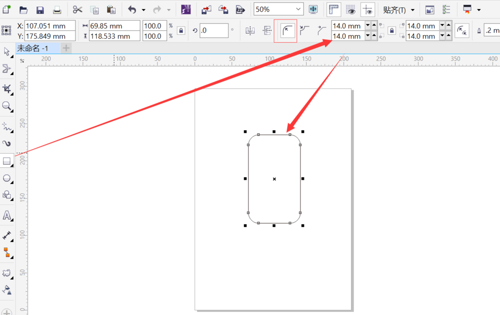2、用矩形工具画出一个矩形,并调整成圆角矩形