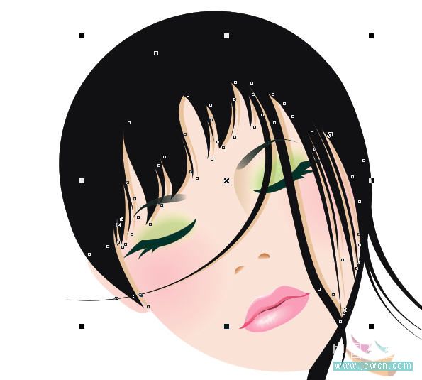用同上的方法绘制头发的后面的头发,按下Sfhit+PageDown组合键,将它置于最底层,如下图所示: