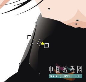 由于我们前面画的衣服是黑色的,没法再细化暗部了,因此在这里,我们直接勾出衣服的受光面就行了