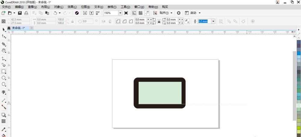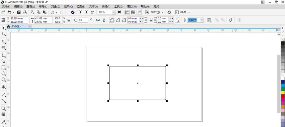 1、启动CorelDRAW 2018界面后在画板中先绘制矩形。