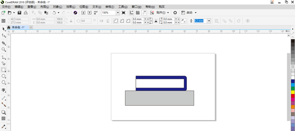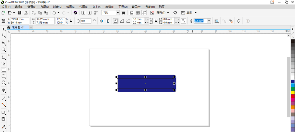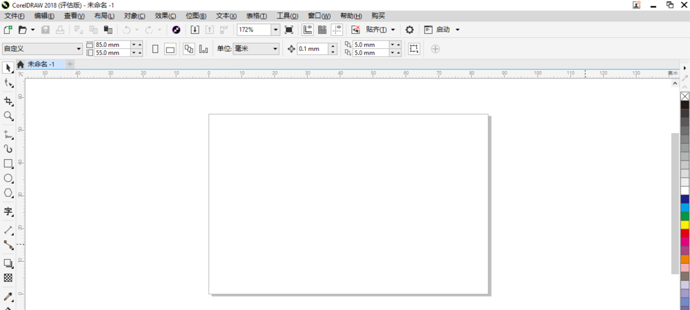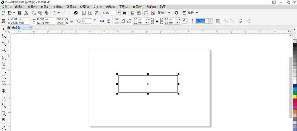2、然后在工具箱中单击“矩形”按钮后再在空白画板中矩形的形状。