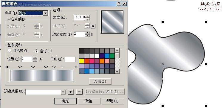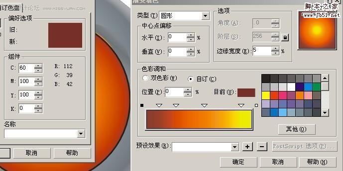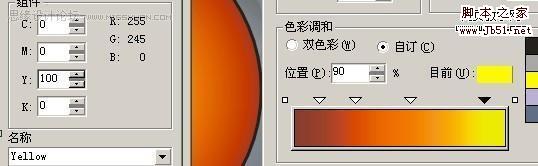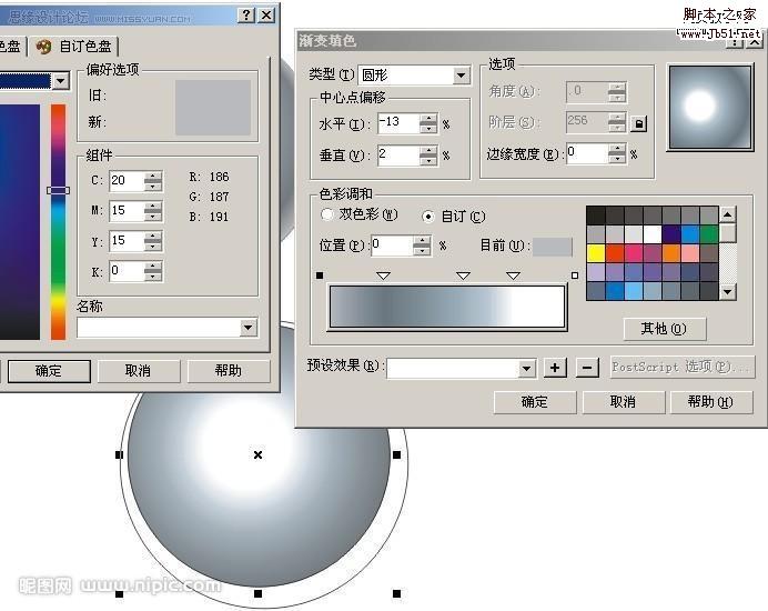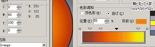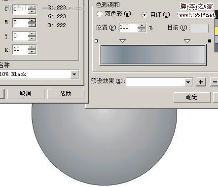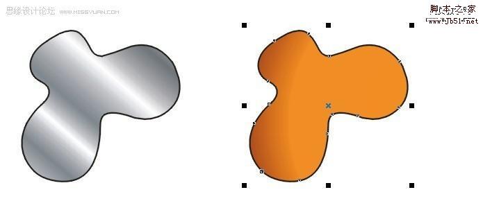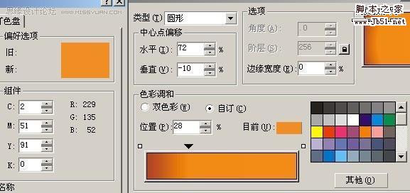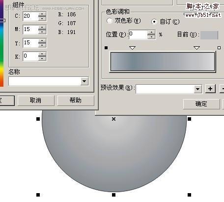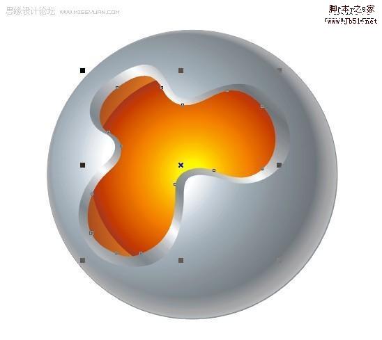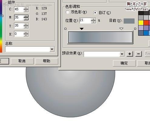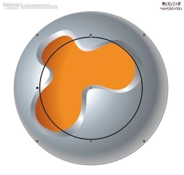 填好颜色以后,然后将调好的颜色填入最初的两个圆中,我一开始叫你们复制过的一次,按Ctrl+Alt+A复制 填色 然后去掉外框用互动式渐变工具,制造立体感,这个是常用的,这里外框一定要去掉才行!现在是最主要的,修饰,画一个曲线比较好看的的图形,然后放在小圆中心,复制一个出来现在调里面的颜色,自己看