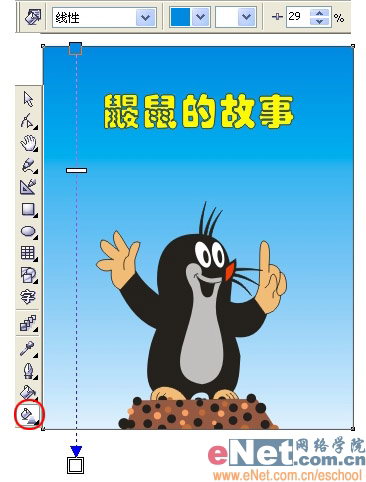 用矩形工具画一个矩形,用交互式填充工具从上到下拉出一个由蓝到白的线性渐变,具体设置如下,再用文字工具打上文字,完工!