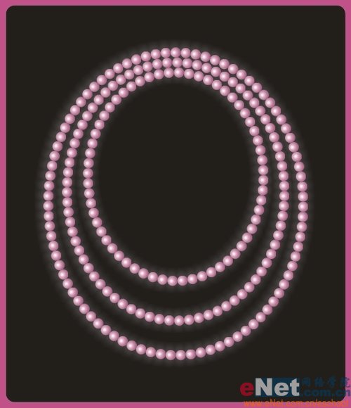 8、复制出另外两条,将它们的椭圆路径拉长一些并相应地增加珍珠的步长值,效果如下。