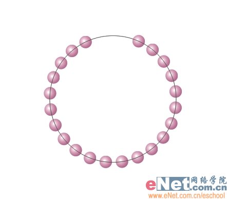 5、此时在椭圆上点一下,珍珠就以椭圆为新路径了,效果如下。