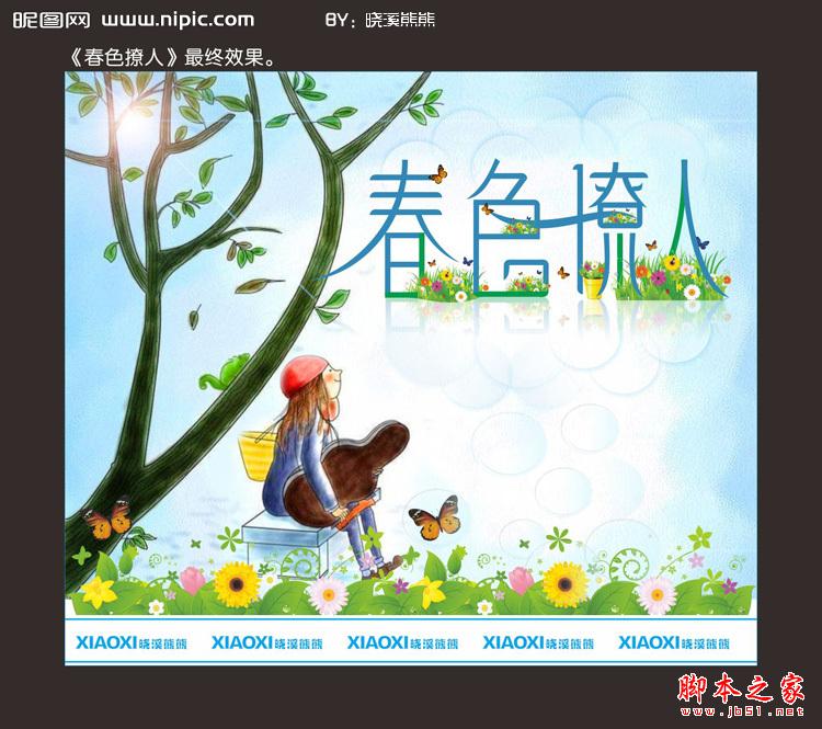 7.跟着导入小女孩和树的素材,看怎么好看 怎么设计。我把英文去掉了。