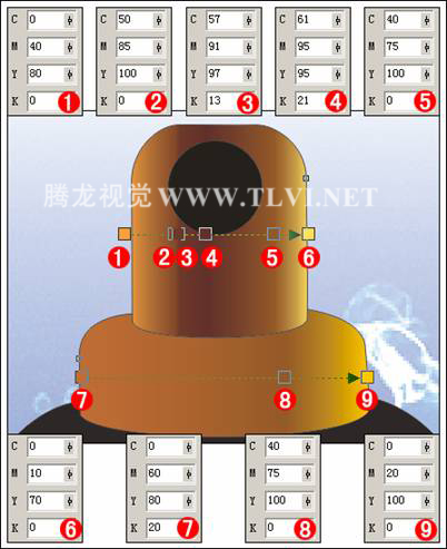 (7)在喷嘴图形的上方绘制图形,然后为其填充渐变色。使用