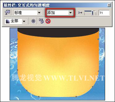 “交互式透明”工具,为背景添加线性透明效果,如图12-92所示。