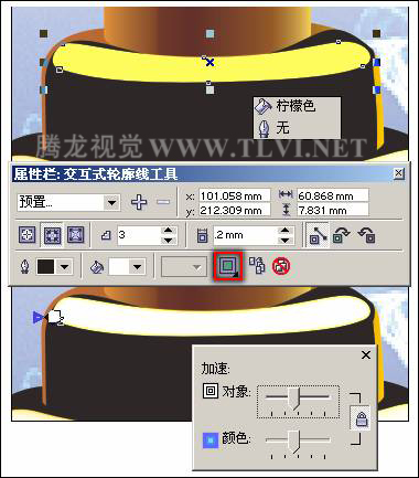 “交互式轮廓图”工具,为填充渐变色的高光图形添加轮廓图效果,如图12-108所示。