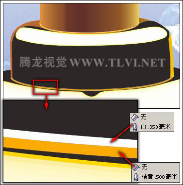 (5)参照图12-111所示在香水瓶盖与瓶身交界处、瓶盖与喷嘴交界处分别绘制桔黄色和白色线条。