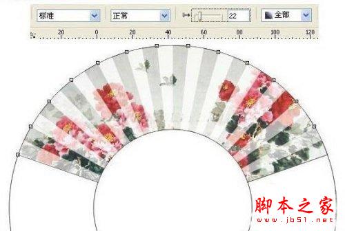4.上一部其实是做扇子的亮部,再调一下透明度,得到如图效果,这样扇面就大概的完成了。