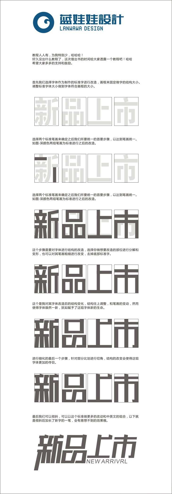 以下都是我个人的一些字体设计的一些教程,经过两年多来的研究和不断的练习,总结了一些字体设计的经验,能够与大家分享,是我至高无上的荣耀和自我修养的的一个很高的肯定,这也是我一生来说最重要的一个梦想,现在实现了,而且还有那么多人的鼓励和支持,希望在以后的道路上,一直有你们的陪伴。话不多说,总的来说,字体设计是要靠心的,其中包括心情、思想、激情、勤奋。这都是我们在做设计时必须要掌握的一门课程。不管任何时候,都要学会控制。