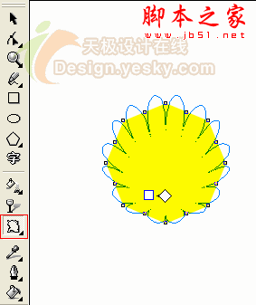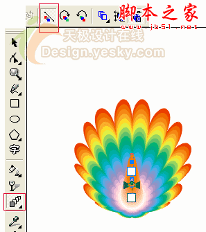 第4步:点击“工具箱”→“交互式调和”工具,在黄色图形上单击并拖动鼠标指针到白色的图形上,在属性栏中单击“逆时针调和”按纽,如下图: