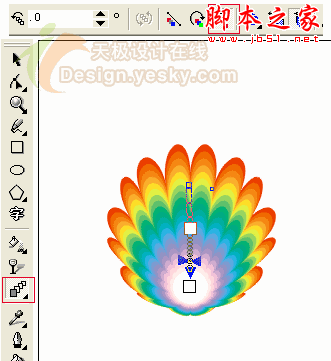 第2步:点击“工具箱”→“交互式变形”工具,在图形的中下部单击并向左拖动鼠标指针对图形进行交互式变形操作,如下图:
