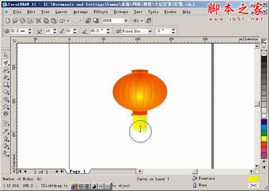 8.灯笼还差上面的提手。用Freehand Tool画一个如图(10)的线条,再用Shape Tool稍微修改一下就可以了。将线框的宽度设置的高一些,颜色选择Yellow。