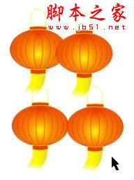 9.用Ctrl+A选种全部的物体,再用Ctrl+G组合一下。灯笼就算做好了。用“+”复制3个,我们可以在上面帖上“新春快乐”几个字。(11)