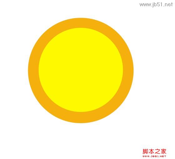 选择椭圆工具,按住Ctrl键,绘制一个圆形,设置图形颜色的CMYK值为:2、31、93、0,并填充图形,取出图形的轮廓线,向内拖曳圆形右上角的控制柄到适当的位置单击鼠标右键,缩小并复制图形,设置图形颜色的CMYK值为:0、0、100、0,并填充图形。